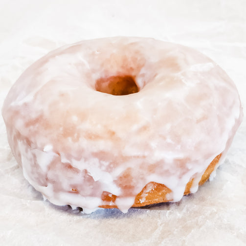 Nothing is more classic than a vanilla glazed, yeast-raised ring. We've perfected our yeasted dough so its lightly sweet, but oh-so flavourful. We cut and fry our classic rings fresh every morning, and give them a dunk in vanilla glaze while they're still warm! (Vegan)